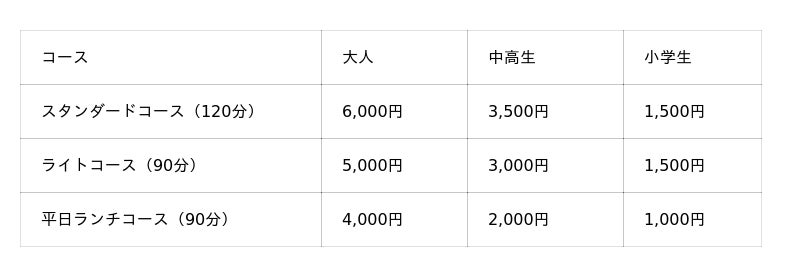 ※延長料金はお一人様30分1,000円です。