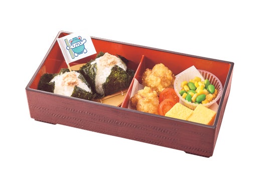 ツナマヨおにぎり・とりからあげ・たまごやき・えだまめコーン・ミニトマトが入った、おこさまにぴったりなボリュームのキッズメニューが新登場!スプーンや手を使ってお召し上がりいただけるため、小さなおこさまにもおすすめの一品です。