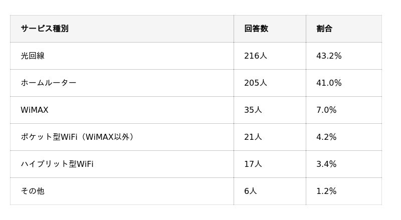 光回線が43.2%で利用率が高かったことも、「通信速度の速さ」への強いニーズを裏付けています。