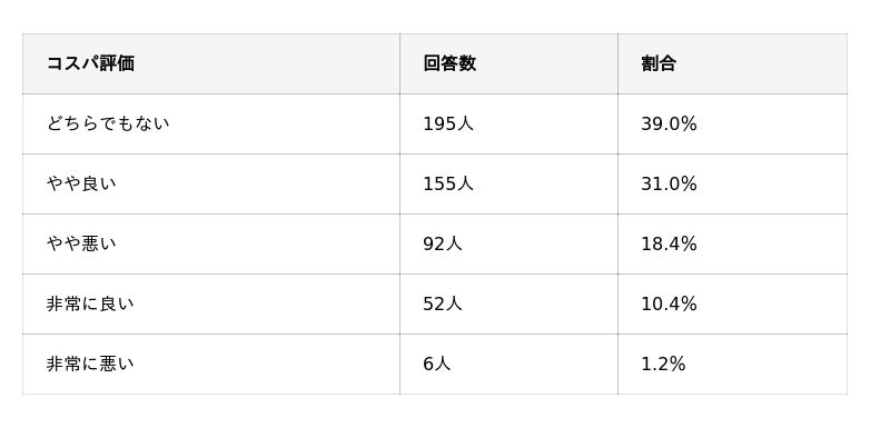 ・コスパは「どちらでもない」39.0%が最多