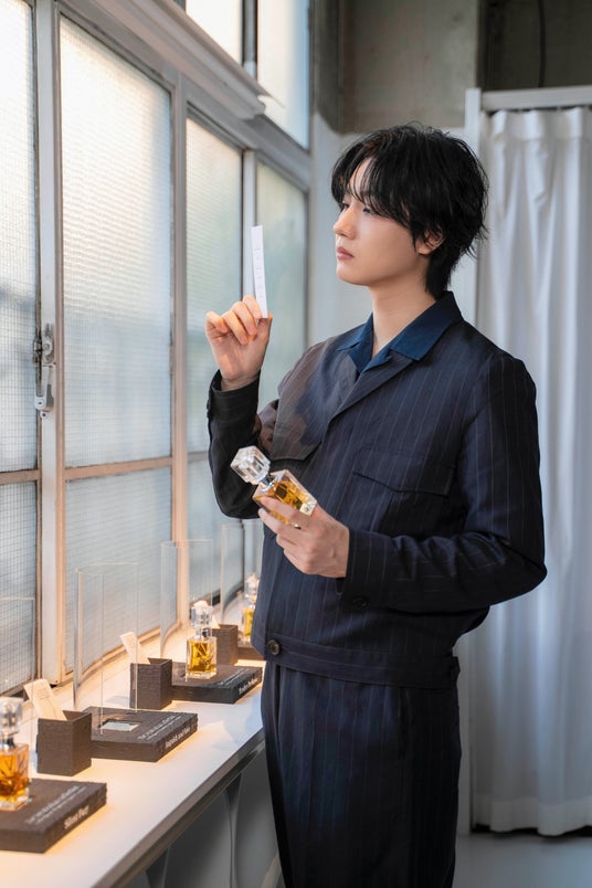 センツォリウム コレクションのコンセプトは、本当に素晴らしいと感じました。普段、香りを選ぶときは自分の感覚や嗅覚を頼りに、純粋に“好き”と思えるものを選ぶことが多いのですが、今回はひとつひとつにしっかりとした物語性がある。僕は言葉をとても大切にしているので、「希望・怒り・驚嘆・覚悟・至福・狂喜」という中から、その時の自分に合う言葉を、香りとともに選べるという体験がとても印象的でした。6つのチャプターがあると聞いたとき、最初はどこか統一感のある香りなのかなと想像していたのですが、実際はそれぞれがまったく異なる場所にあるような、遠く離れた場所にある感情を集めたような印象でした。人生を振り返ると、自分の感情が大きく揺れ動いた瞬間というのは、それぞれが決して同じ場所にはなかったなと感じます。だからこそ、この6つの香りは、それぞれの個性が際立っていて、まさに人生そのものを表しているように思えました。
